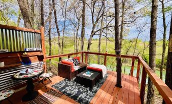 Grab your best friends or family and take in a few days of creative serenity down on the river. On the River by Heart Rock Hideaway is the dream that made its way to reality. We created this peaceful oasis because we believe that world needs more joy, more calm, more happiness. This property is located an almost 10 minute walk to Downtown Sparta. The studios are located at the end of a dead end street overlooking the rolling hills of Middle TN as well as the ever beautifully flowing Calfkiller River. We rent each unit separately but by request, we have bundled all three for that perfect staycation, vacation, or just that much needed mental health break.