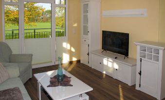 Modern, comfortable apartment block "Altherscher Hof", 2 storeys, renovated in 2021, surrounded by trees, meadows and fields. 4 apartments in the residence. 14 km from the centre of Grimmen, on the outskirts, 40 km from the centre of Stralsund, 65 km from the centre of Rostock, in a quiet position, 45 km from the sea, 1 km from the river, 32 km of lagoon, in a cul-de-sac, in the countryside. For shared use: park 17 ha with flowers and trees, meadow, beautiful garden to relax, courtyard, natural pond. In the house: washing machine (for shared use, extra). Parking on the premises. Supermarket 12 km, restaurant 12 km, bus stop "Tribsees" 10 km, sandy beach "Dierhagen (Fischland)" 45 km, outdoor swimming pool 1 km. Nearby attractions: Ozeaneum Stralsund 45 km, Halbinsel Fischland/Darß/Zingst 45 km, Insel Rügen 50 km, Insel Usedom 90 km, Trebeltal 1 km. Please note: car recommended. Suitable for families. On the estate animal husbandry. Local sale of farm products. Loading and unloading of baggage is possible at the holiday house. The owner lives on the same property. Additional accommodations can be booked. Property ref. DE9220.101.1 is situated on the same property. "Nelke", 2-room apartment 50 m2, on the upper floor. Object suitable for 2 adults + 1 child. Modern and tasteful furnishings: living/sleeping room with 1 sofabed, dining table and satellite TV (flat screen), radio. Exit to the balcony. 1 double bedroom. Kitchenette (dishwasher, 4 ceramic glass hob hotplates, toaster, kettle, microwave, freezer, electric coffee machine). Shower/WC. Underfloor heating. Balcony 5 m2. Balcony furniture, barbecue (portable). Facilities: Internet (WiFi, free). Please note: non-smokers only. 1 small pet/ dog allowed. Smoke alarm.