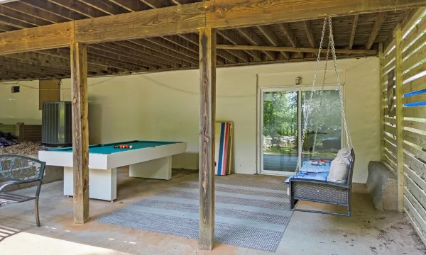 So many extras. A large house and property gave us plenty of space and lots to do. From kayaks and paddle boards to corn hole and other games, a fire pit for s'mores gave us all a great getaway. High end upgrades in house with a large kitchen for eating and gathering together.