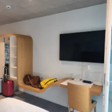 Easy and fast electronic check in/out using smart phone. Very convenient access to car park (free) located at basement of the hotel. Clean and spacious guest room including bathroom.