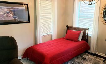 Our family (2 adults, 3 kids ages 17, 12 & 11) stayed here while attending/working a convention at the Raleigh Convention Center. This house was within 15 minutes of downtown and perfect for our needs. The full kitchen was nice to be able to cook meals. There were 3 beds, 2 rooms (one bed in living room). They were quite firm memory foam - we prefer softer so that was not great for us. But everything was clean and as shown in pictures.