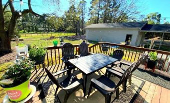 Take it easy at this unique and tranquil country feel getaway just 15 minutes from downtown Raleigh. Enjoy a nice meal on the back deck or a firepit surrounded by trees. Appreciate the Wildlife running & flying around the big maple tree. Our home is off a main road therefore there will be some vehicle noise, but we added smart speakers in each bedroom to help light sleepers. Comfortable desk and chair to work from home. Walnut Creek Music Park 5 minutes and DT Raleigh 15 minutes awayAbout pets:No pets allowed.About checkOut:Check out before 11:00 AM.About children:Children allowed: ages 0-17.About customRules:1. We don’t have a paved driveway, it's gravel with some mud so we ask that shoes are removed to not track mud inside..2. The house is on a septic system so we ask that you do not flush any products other than toilet paper in the toilets.,3. Also, due to the septic system, put in trash all food debris, cooking oils, grease, fats, coffee grounds, or chemicals, not in the sink drain..About checkIn:Check in after 4:00 PM.About smoking:Smoking is not permitted.About minBookingAge:Minimum age to rent: 21.About events:No events allowed.