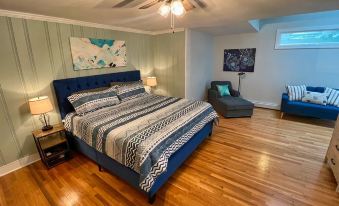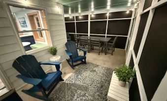 The cottage is where kids go to play and adults can get away! The detached two bedroom area cottage has a full dedicated kitchen, full bathroom and giant movie and game room. There's a 100 inch 4k tv with 5.1 surround sound and Apple TV to stream all your favorite movies and shows with seating space for a large group. For the gamer, there's an Xbox Series S with Logitech Racing Wheel, a retro full size arcade cabinet with every classic arcade game ever made, a full size virtual pinball machine with dozens of tables, a virtual board game table with nearly every classic board game and an entire bookcase full of real board games, puzzles and more. The upstairs loft of the hideout has two twin XL beds, and the movie room can be converted over to two queen size beds making it perfect for an extra family or kids camp out space. The screened in porch is the perfect spot to hang out at night.