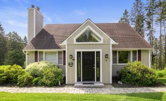 Escape to Stargazer Sanctuary, a contemporary cape home just over a mile from Mountain Road. Enjoy an open floor plan, cozy fireplaces, a game-filled basement, a hot tub under the stars, and a serene wooded setting with wildlife and a seasonal sledding hill.