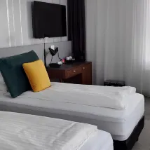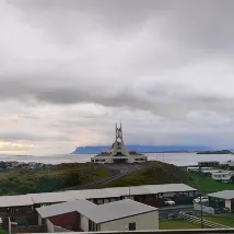 飯店緊鄰斯蒂基斯霍爾姆教堂 (Stykkishólmskirkja Church),步行約 10-15 分鐘即可抵達市中心/渡輪碼頭。對於我們從冰島北部前往西部的旅程來說,這裡是一個方便的停靠點。飯店房間視野開闊,基本設施齊全。淋浴間和馬桶之間僅隔著一塊「可移動」的玻璃,淋浴時水可能會灑到其他地方。整體來說,住宿體驗不錯。