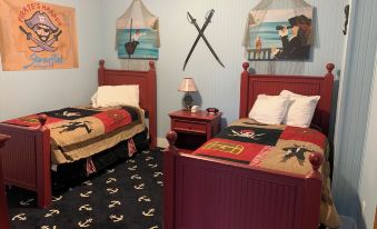 Hosting a family get-together? At Stormy Point Village this four bedroom cottage is perfect for you! It features three bathrooms (one on each level) of the Cape Cod inspired cottage. There is a family rec room and two patios for plenty of hang-out space. The downstairs bedroom is pirate themed, perfect for the little buccaneers. Each bedroom features pillow-top beds & blackout drapes. The living room includes a fireplace, while the kitchen is fully equipped - including stove top. The cottage also hosts a private spa tub as well as washer & dryer units. No matter what the occasion Stormy Point Village is the perfect fit to be your home away from home.