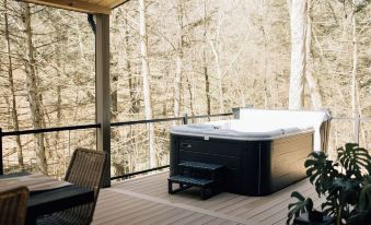 您可以泡在熱水浴缸中,在燃氣火坑旁放鬆身心,或在甲板上享受戶外用餐,同時欣賞小溪的聲音。配有燃木火坑,可在星空下度過舒適的夜晚,或在早晨享用咖啡,欣賞小溪美景。