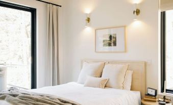 您會發現一張豪華大床和一扇露台門,可通往私人甲板,欣賞風景如畫的小溪景色。