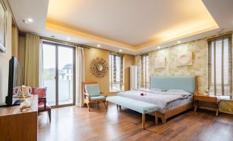 臥室1:1張特大雙人床 ● 臥室2:1張加大雙人床 ● 臥室3:1張加大雙人床 ● 臥室4:1張加大雙人床 ● 臥室5:2張雙人床 ● 臥室6:1張雙人床 和 2張單人床