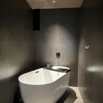 設施:淋浴超級舒適,浴缸有套帶和花瓣,吹風是戴森的,已實測!拖鞋提供了一次性和日常拖鞋,簡直無微不至 衞生:很乾凈,沒有發現任何雜物 環境:跨小河建的,很漂亮的玻璃風景,有室外空間,可以坐着喝喝茶,房間非常非常安靜,聽不到一點外面的聲音,這個很滿意 服務:服務相當熱情啊,100分! 雙人蘇式下午茶:合理,而且可以在室外用 免費租賃電動車:太方便了,簡直了