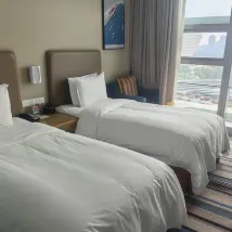 為了離演唱會場館近而定了這個酒店,入住體驗很不好。前台工作人員業務不熟悉,分配給我的房間裏面不僅有煙味還有上一輪旅客剩下的外賣沒收拾,還有莫名其妙的機器人要來送外賣。雖然後麪給我換了房間,但整體感覺真的很不好。演唱會期間價格也1600了,連三四百的水平都沒有。不過,距離場館確實很近很近,在超大人流的散場情況下也七八分鐘內步行可到房間。