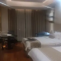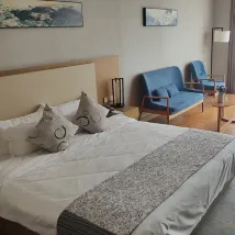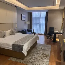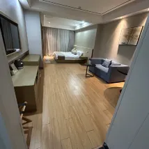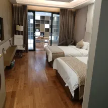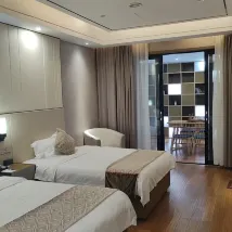 結束一天的奔波,最渴望的是一處能讓身心棲息的港灣。每一刻都是對舒適與品質的深度體驗。 踏入房間,簡約而不失格調的設計映入眼簾。兩張柔軟的大床靜靜佇立,潔白的床單如雲朵般輕盈,精緻的床品觸感絲滑,彷彿在温柔地訴説著“歡迎回家”。靠在蓬鬆的枕頭上,一天的疲憊瞬間消散。 房間一側,木質地板散發著自然的氣息,與整體温馨的氛圍相得益彰。透過落地窗,城市的繁華或自然的寧靜盡收眼底。而當夜幕降臨,柔和的燈光亮起,營造出靜謐而浪漫的氛圍,伴您安然入眠。 走出房間,步入連通的休閑區域。簡約的桌椅擺放整齊,在這裏,您可以泡上一杯熱茶,翻開一本好書,享受獨處的悠閑時光;也可以與同伴輕聲交談,分享旅途中的點滴趣事。