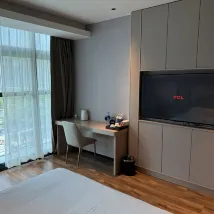 房間非常乾淨,也比較大,相對於蘇州市工業區來説,性價比還是很高的,停車也很方便,中央空調效果很好的。交通出行也很方便,灑店右拐2分鐘就是地鐵2號線,去金雞湖景區及東方之門3站就可以到達。