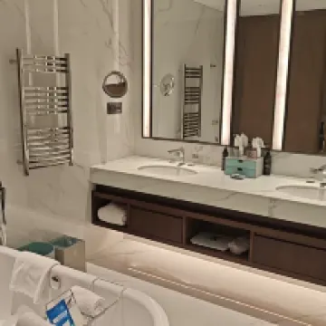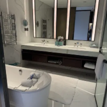 條件是很好的,主要誇誇服務! 先誇誇管家孔言言,漂亮又有親和力。看見我們帶小朋友立刻就送了小玩具。入住後任何問題都能幫你快速解決。我們是初四入住的凌晨大家會放鞭炮迎財神,言言甚至還提前發了消息提醒問要不要耳塞。 再誇誇客房部。我們是標間拼床 要加床圍欄,來拼床的帥哥動作很麻利,也很有禮貌。晚上寶寶吃葯把床單弄臟了,聯繫言言後來了兩位美女,幫我們的拼接床鋪了一個大號床單,很禮貌也很專業。 還要誇誇自助餐廳。大家一定要試試這家的紅湯麪加燜肉哦!很正宗!早上拿餐的時候發現沒有吸管,工作人員看我手上不方便,很體貼地幫我把餐拿到座位,記住我的桌號後又幫忙送了吸管過來。 酒店在服務培訓方面絕對下功夫的,所有工作人員都很熱情、體貼,帶小孩諸多不便,酒店也能幫忙一一解決,真的非常感謝!