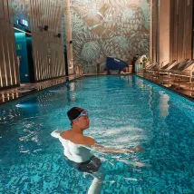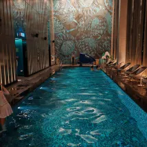 室外泳池非常不錯,恆温,風大的時候也不覺得冷;早上陽光照進來比較好看,夜景很好 。室內泳池一般,太多小孩兒了,下餃子一樣沒辦法去遊。