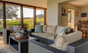 Comfortable and beautifully decorated, the open plan living room features a large L sofa, a large coffee table, and a Big screen 55 Inch Flat Screen Smart Tv (Roku Powered) to enjoy both movies and sporting events. Next Escape to our sunroom, a haven of tranquility and natural light, This Neutral-toned room is the perfect spot for an Ideal hangout. Sit back, relax, and socialize with friends and family.