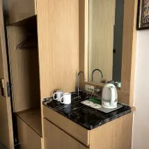 設施:酒店整體設施不算新包括房間與公共區域。 衞生:房間衞生乾淨整潔,衞生間比較小,浴室有晾衣繩比較方便。 環境:酒店位置很好,有地下停車場,適合自駕。周邊配套比較好無論是購物或就餐。 服務:服務非常滿意,周到熱心,洗衣方便前台提供洗衣粉。