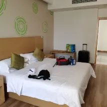房子空間特別大,就是衞生間要是能夠再增加個一平方給他就好了。房內的配套一次性用品設施齊全。總枱服務員也挺熱心周到的。