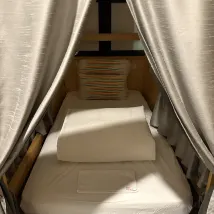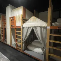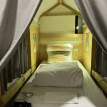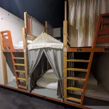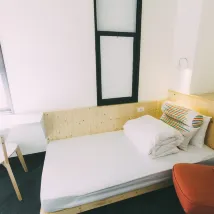 位置很好,服務人員無敵親切,做為線上工作者,這裡的公共空間完善,有咖啡與簡單茶點,插座足夠,讓我有很完美的工作效率。 房間床位因為風散,床的門簾會飛動,一點點沒有安全感,但整體來說,沒問題喔!