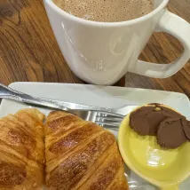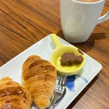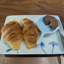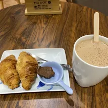 住宿:女生房裡的一個床位,整體很舒服。早上6:30被隔壁廟的鞭炮叫醒,有點嚇到^_^ 早餐:是阿信巧克力店的可頌+巧克力醬&巧克力飲料。食物蠻好吃的,飲料意外的不會很甜。