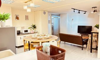 The living room and bedrooms were very cozy and made it a pleasant stay. However, we found the bathroom to be quite outdated, and the shower hose connected to the sink felt a bit uncomfortable and old-fashioned. This impacted the overall bathroom experience. Overall, we had a good stay with excellent location. Walking distance to Taipei 101, Warner Bros Movie, Mitsukoshi. Downstairs has a Familymart and a buffet lunch. Corner a nice coffeeshop Bupa.