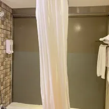 大門口出入口有幾級,老人家出入不太方便。 浴室最令人不滿: 洗手盤跟嚨頭沒有空間讓水煲盛水、只有一個鈎,沒有地方放乾淨衣服、毛巾架安裝太低,易弄濕、浴簾上有許多黑點疑似霉菌、馬桶每隔數十分鐘便自動沖廁,聲音比較滋擾。