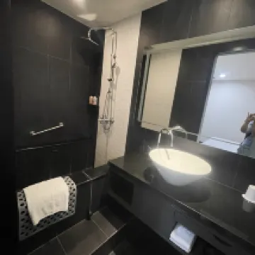 空調不太涼快,不過工作人員很好心地提供了風扇。 🤦🏽 地點還行,靠近餐廳、便利商店和BTS輕軌。不過大多數人都搭計程車。 🤦🏽♂️ 食物很糟糕,選擇有限,味道也普通。 🙅🏽 房間不太乾淨。我最喜歡的是浴缸。