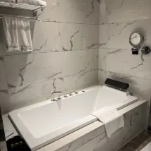 服務很好,開房時送水果,退房時送小零食。早餐還算可以。晚上有夜宵送到房間,真的很貼心❤️ 雖説沒有智能馬桶,自動窗簾,但是房間寬敞。衞生間還有浴缸!