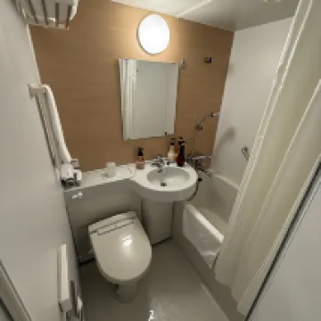 五一假期入住,體驗藝術祭 優點: 1.位置不錯,離高松港口步行13min左右,離商業街、各種餐飲店很近,既方便跳島也方便探索高松城市 2.衞生打掃乾淨 3.酒店有自行車出租,300円/24h(但我最後去高松站租的200円/24h,但3天內必須歸還一次再續)酒店租好處是借車和還車方便,不需要複雜的流程 4.checkin後願意幫助客人預訂居酒屋(雖然最後也沒讓他們幫忙預約) 5.每天提供一瓶飲用水 缺點: 1.單人房有點小 2.一次性用品自取(這點有好有壞吧,就是每次回去要記得取一下,浴帽不會放在自助櫃,需要找前台拿)