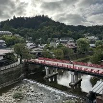 典型的日式温泉旅館,離JR高山站不遠,步行大約10分鐘。酒店就在網紅紅橋邊上,離宮川朝市,高山陣屋都很近,定的是一泊二食,晚餐有好吃的飛驒牛,早餐選的是日式早餐。温泉在7樓,人不多,邊泡湯邊欣賞風景,很愜意。