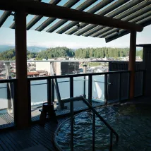 整體酒店體驗不錯,房間位置好,房間比想象的要大。景觀温泉配套不錯,女士有兩個公共浴場,其中一個是由糧倉改的,有特色。餐食味道一般。 不足: 1. 前台幾位女服務員態度比較冷漠,經常冷臉,其中一位年紀較大者在退房時回答我關於班車問題時明顯不耐煩。 2. 被分配到了全酒店唯一一個沒有陽台的河景房,和房間照片有差距,感受上很不舒服,不知道是什麼原因,不知是否有所被針對。 3. 早餐時間太早!去的時候衹能選擇6:30/7:00/7:15,晚上必須早睡否則困一上午。退房時間是10點,延長退房需要加錢。