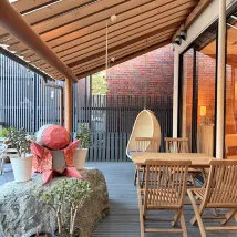 非常驚喜的一家店,通過攜程,直接中文和酒店預約了接站服務。從高山站到酒店也就4、5分鐘車程,本館就在馬路對面。服務非常nice,有個户外的休息區環境太棒了。酒店的高層就有公湯,男女分開。洗漱用品都很不錯。一到酒店,會有服務員擊鼓表示歡迎,我們選擇在户外區域辦理入住。歡迎綠茶cold好喝,辦完入住,就能選擇喜歡的包包,適合自己的洗漱用品,小童的浴衣很漂亮,成人的選擇少,每人一套浴衣+睡袍。因為第二天我們要住到本部去,所以第二天辦理完退房,行李直接會有人送到本部的房間。房間選擇了42平,因為被切割成一塊塊,乾濕分離,倒也沒覺得多大。但整體還是非常不錯的體驗👍