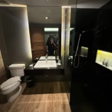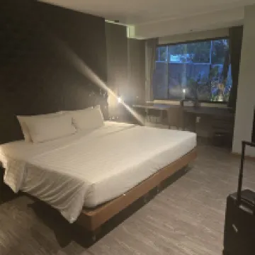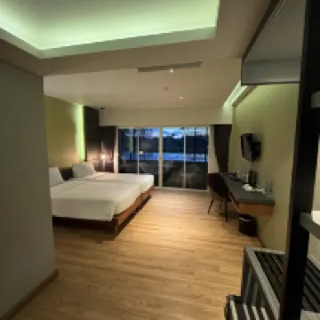Проживали в марте 2025 в течении 3-х дней. Понравился большой светлый номер со всем необходимым. Мебель ремонт современные, кондиционер новый, постельное, полотенца всё ок. Свет, вода всё в полном порядке. В номере чайник, пополняют кофе, чай, сухие сливки. Воду приносят каждый день. По бутылочке на человека. Есть бассейн. Мы не сходили ни разу. Наш номер выходил на трассу, было большое панорамное окно ведущее на балкон. Шум от трассы, плотно закрытый балкон и беруши спасают ситуацию. Расположение отеля отдаленное от пляжей и центра. Если Вы на байке, машине то однозначно рекомендую. Хороший, обычный тайский завтрак. Тосты, яйца, сосиски, рис, лапша, овощи, фрукты.