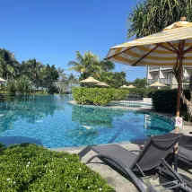度假村非常漂亮。有三個乾淨的游泳池。每個區域的工作人員都非常好。他們見到每位客人都會打招呼,並向他們致意,走過他們身邊時還會鞠躬致意。早餐種類豐富,非常美味。我入住期間,有糯米飯配炸豬肉、雞肉麵、柚子沙拉和各種鮮榨果汁。總的來說,我印象非常深刻。
