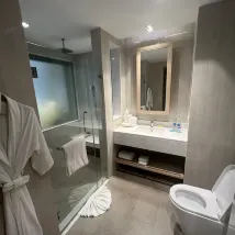 房間寬敞、乾淨、裝潢精美,並配備了我所需的一切設施。床非常舒適,尤其讓我印象深刻的是飯店員工。他們熱情友善、專業周到,隨時準備提供協助。 自助早餐種類豐富,新鮮美味,既能滿足本地人的口味,也能滿足國際遊客的需求。