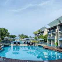 飯店擁有寬敞的庭院,非常適合在泳池邊或海邊的躺椅上放鬆身心,所有躺椅均免費提供。員工服務反應迅速。辦理入住時,房間裡有一股潮濕的味道,但工作人員立即處理並提供了空氣清新劑。清潔工作做得非常好。我喜歡這裡的早餐,種類豐富。酒店設有一個獨立的區域,供沒有孩子的客人安靜地休息,但有一天沒有開放。雞蛋和湯的供應點需要排隊,考慮到客人眾多,這也在情理之中。飯店庭院環境優美,沿著私人海灘和草坪漫步令人心曠神怡。飯店缺點:1)週邊基礎設施非常差。飯店附近只有幾家商店。貨幣兌換服務僅在特定日期提供。附近的餐廳和按摩店選擇非常有限。您可以步行前往更遠的地方,大約10分鐘,但晚上穿過昏暗的街道可能不適合所有人。飯店提供前往無尾熊中心的接駁車,但並非每天都有。習慣了普吉島豐富多彩的住宿選擇的人可能會覺得酒店外的住宿選擇非常有限。 2)沙灘上佈滿了尖銳的貝殼,根本無法赤腳行走;三天裡我一次都沒敢下海。 3)從普吉島開車到這裡大約需要兩個小時,包括到機場的時間。這家飯店非常適合喜歡安靜祥和、不願意離開飯店的客人。