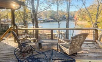 Welcome to Lake Martin Cove. This stunning lake home is "the whole package" from expansive views overlooking from the living room, a spacious outside area with two docks and a boat ramp, and tons of parking for all family and friends. This 5 BR, 3 bath, sleeps 12 has 2 decks and a screened-in porch, and includes yard games, kayaks, paddle board, and innertubes.