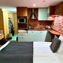 套房寬敞舒適。桑拿浴室很小,很快就準備好了。在桑拿房裡度過的兩個小時真是太棒了。 沒有免費停車場。煮至少 12 小時。 早餐是標準的,但餐具聞起來像髒抹布。 總的來說,一切都還好,總分是4.8分(滿分5分)。 臭餐具毀了“照片”