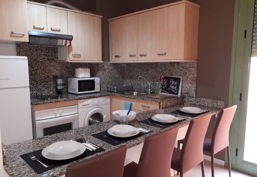 50 m2 apartment with terrace. It has an electric cooker, washing machine, microwave, coffee maker, toaster, hot and cold pump, double bed, sofa bed in living room.