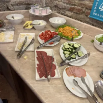 Мне понравился отель. В центре Тбилиси, рядом с метро Руставели. В номере чисто, убираются. На завтрак небольшой шведский стол, омлет, сосиски, сыр, ягоды, фрукты, мюсли, йогурт, выпечка. Кофе и чай есть в номере.