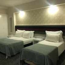 Duvarlar çok inceydi sabah sabah yan odanın kapısı mi çalınmış, kapısı mi açılmış, içerideki ayak sesleri, konuşmalar vs. her şey duyuluyordu. Yataklar genel olarak rahattı. Diş fırçası ve macununun olmaması çok büyük eksi olmuş. Bir odada buzdolabı ve terlikler varken diğer odada olmaması da göze çarpan detaylardandı. Kahvaltısı genel olarak iyiydi özellikle peynirler, belki meyvelerin çeşitleri azaltılıp yumurta çeşitleri konulursa daha iyi olur. Patates ve domates bitince görevlilerin hemen doldurması artı bir özellikti. Denize sıfır olması çok güzel ama biz telefonda konuşurken deniz manzaralı oda istememize rağmen otele vardığımızda manzaralı odalar dolu dendi ve arka odalar verildi, hoş değildi önceden konuşulan bir konuydu bu. İnternet odada bazı yerlerde çekmiyor.