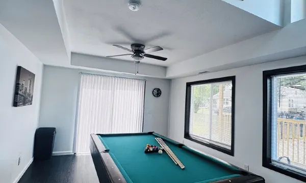 The property is large and has a nice kitchen, living space and area to hang out with a pool table. Upstairs had a great little balcony.