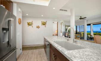 Mauna Lani Point is located in the most desirable oceanfront community, featuring a newly refurbished pool, jacuzzi, sauna, and comfortable seating. Enjoy BBQs, a fully equipped kitchen, and dining areas. As a guest, you’ll receive access to The Mauna Lani Beach Club and Napua restaurant, situated on a secluded beach cove ideal for swimming and snorkeling.