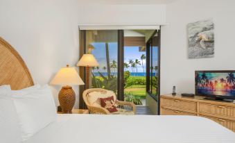 Welcome to your dream Big Island getaway at Mauna Lani Point A-107! This stunning one-bedroom residence offers breathtaking ocean views that will captivate you from the moment you step inside. Immerse yourself in a tranquil ambiance as you relax in the spacious living area, beautifully adorned with tasteful decor and flooded with natural light.