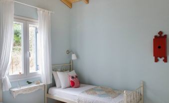 It has a room with double bed, a room with 2 single beds, a main room with a couch that can be a bed as well, a beautiful renovated kitchen full equipped and a renovated bathroom! We also provide drinkable and tasty tap water (islands usually have drinkable but not tasty water) due to the "olympus" water filter that we update every year. We also provide you with very good thermos water bottles for the beach and your trips around the island. You have no need to buy plastic water bottles in the Handmade House.