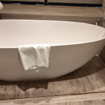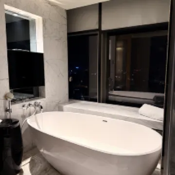 很好的一次體驗,大廳空氣中瀰漫著淡淡的木質香氛,前台工作人員身着得體制服,微笑恰到好處——這一切都預示着這將是一次非凡的入住體驗。 這次入住的是豪華大床房,推開門的那一瞬便感受到了空間的奢侈。落地窗外,天津的城市天際線盡收眼底,夜晚則化為璀璨星河。尤其是落地窗邊的浴缸,讓我們疲憊的工作之餘,享受片刻的放鬆。