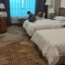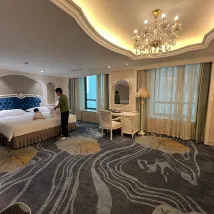 五星好評!這次天津之行選擇入住金皇大酒店,實在是明智之舉。酒店位於市中心黃金地段,距離繁華的小白樓商業區咫尺之遙,無論是出行、購物還是觀光都極為便利。 關於服務: 酒店停車方便,前台辦理入住高效流暢,工作人員笑容温暖,特別是楊佳文經理,熱情接待,還準備了中秋月餅,讓人瞬間感受到家的温暖。 關於房間: 入住的是豪華大床房,房間非常寬敞,儘管裝潢是老式風格,但衞生保環境都很好,不愧是五星酒店標準。強烈推薦,下次來天津必定再次入住!
