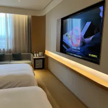 這家酒店整體非常不錯,設施齊全,房間乾淨舒適,服務人員熱情周到,餐飲品質也令人滿意。唯一美中不足的是,入住期間常有小孩在走廊追逐打鬧,影響休息;此外,房間外的餐廳夜間營業至凌晨兩點,唱歌聲較為嘈雜,對睡眠較淺的客人可能造成困擾。若能加強隔音管理或調整娛樂時間,入住體驗會更完美。