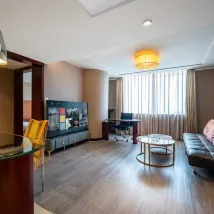 非常滿意!房型做了升級,我們居住的是雙卧室家庭套房,在31層。房間空間充足,和圖片描述一致,兩個卧室,兩個衞生間,配備冰箱,洗衣機,微波爐,很適合家庭居住。阿姨每天都會打掃,補充物品,前台小姐姐服務也很好。體驗感拉滿,整體非常滿意!