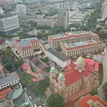 訂的商務套房,非常適合一家人出遊,設施比較齊全,雖然酒店有些老,但是整體使用沒啥問題,也乾淨,主要是酒店位於濱江道步行街,地理位置比較優越,有地下停車場可以停車,對開車出遊比較方便。樓下就是西開教堂。